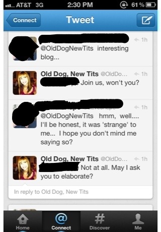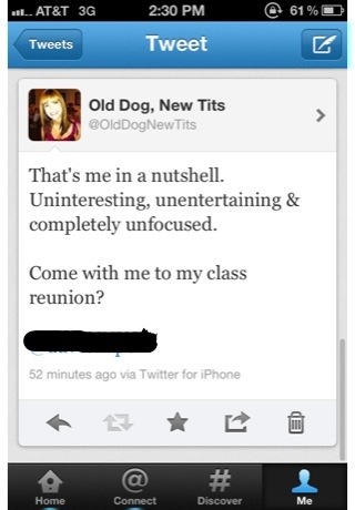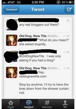 It all started out innocently enough with me sitting at the hair salon waiting for the red to settle into my dark roots. I was playing on Twitter when I saw an opportunity for self-promotion, a must in the writer’s world, at which I suck. And, sort of because I am a nice person … but mostly because my brother guilted me into it … I downloaded a crappy, clumsy free app on my phone that would enable me to blacken out my critic’s identity. (What-EV-er! It’s all still on Twitter anyway if you are so inclined.)