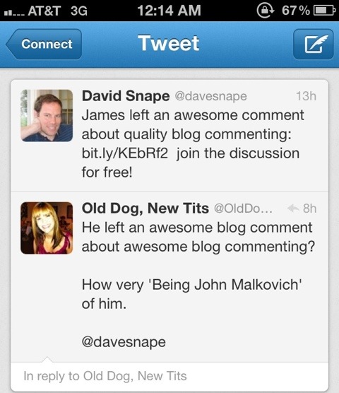 4. Love the comment very “Being John Malkovich” of him! I would love to find more people who channel their inner John Malkovich what a dork for blocking you after that brillant comeback!! Must be the halotosis! Guess I will have to check out Groupon now for all my dental coupon needs!! 🙂