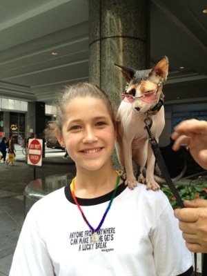 From her photo session with Lucky the Hairless Cat.