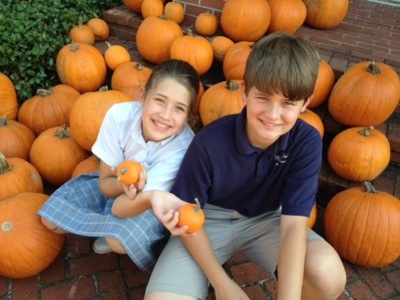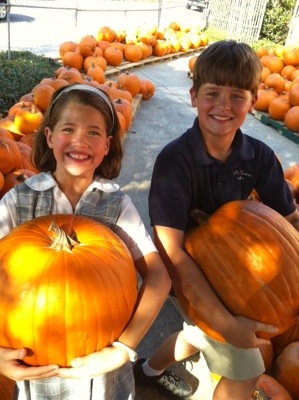 3. Very cute pics. Your kids are so stinking adorable. I don’t know if I have any pics of Em sitting still with her pumpkin. Most are action shots of her running off with the biggest one she can possibly carry. Can’t wait for the costume pics.