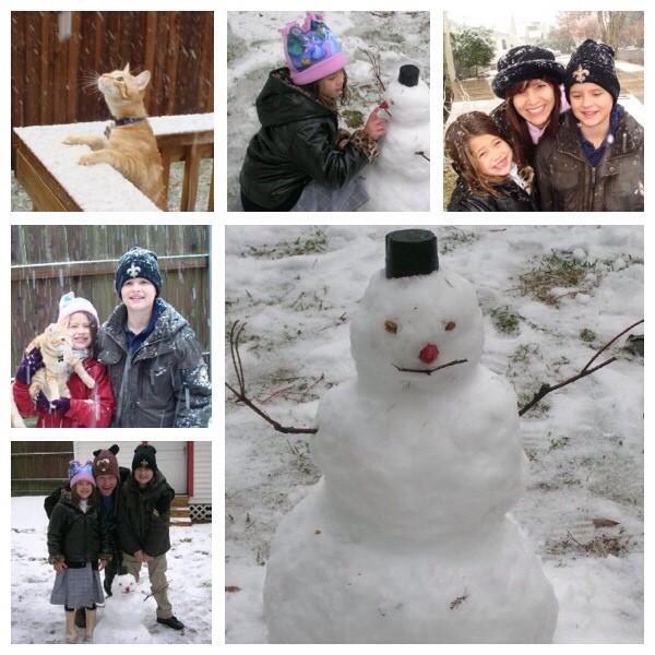 And that’s a real rarity in my neck of the swamp … mosquito-infested quagmire … woods. (I can say these things because I’m from here.) In my lifetime, it’s snowed here six times. And I can really only remember the last two times, because my babies were there. And I do mean babies. They were so little.