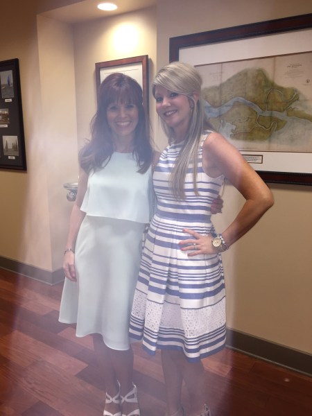 There were nine women, all mothers at my daughter’s school, in the show and we each modeled two different ensembles. As a nice, little perk, we all went to the venue early for hair by H20 (a local salon) and make-up by Chanel. And the ladies from the department store showed up with all of the clothes and accessories. Plus there were staff members from the venue serving food. And drinks. Seriously, there were as many people on the prep team waiting on us as there were models.
