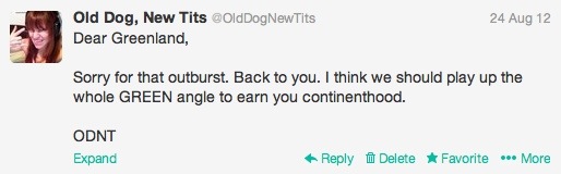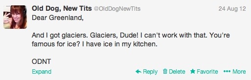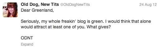 Alright, fine. Maybe I got a little silly. It is, after all, what I do best. Which you would know if you ever bothered to read ODNT!! Just know this. I am a persistent pest of a person. And I really want to hear from someone in Greenland. Anyone! And, once I’ve got something ridiculous in my head, I don’t back down easily. Just ask Alec Baldwin.