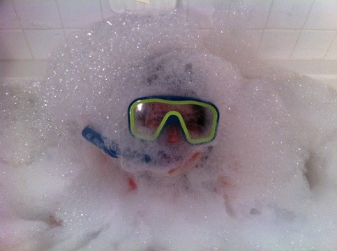 This is how I found her in the bathtub tonight. On her self-titled “Bubble Adventures!” She reminded me an awful lot of Mary Stuart Masterson’s Joon character in Benny & Joon.