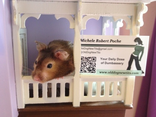 Herve the Hamster is doing his part for the Circle of Moms Top 25 Funny Moms campaign while ODNT and son visit our nation’s capital. He even hung a sign on his handcrafted 19th century Victorian dollhouse bachelor pad.