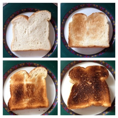 Okay, gentlemen, we want a clean fight. You’ll each be given 5 slices of bread upon which you’ll be expected to perform your duties using each of your five settings. Your performance will be timed and photographed on each of these settings. You cannot hit below the belt, hold, trip, kick, headbutt, wrestle, bite, spit on, or push your opponent. Remember to protect yourself at all times. Okay, touch gloves and come out at the bell!