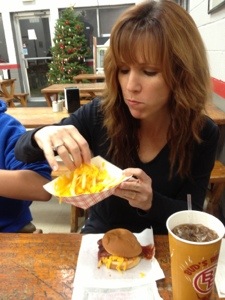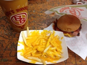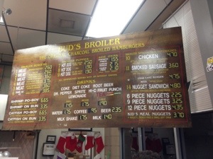 “That question can probably best be answered in picture. So to close out the BFD series, I want to share a photo journal of my evening with the family at Bud’s Broiler, a New Orleans institution since the 1950s. As you can see, I absolutely hated it.” (more canned laughter, mixed with a little booing from a few audience members who don’t get the joke)