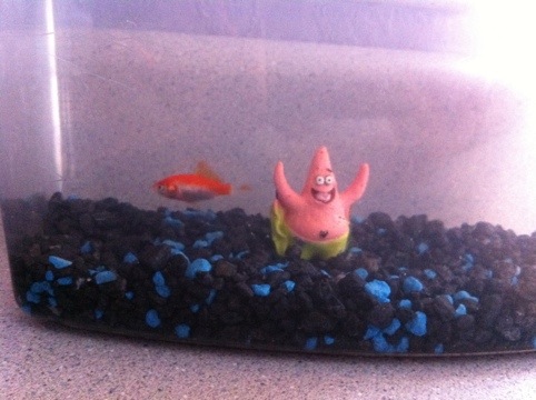 Anyway, as we were putting our overtired, confetti-haired, glitter-cheeked, junk food-filled little girl to bed last night, we asked her what she wanted to name her fish. And, without hesitation, she answered “Steve.”